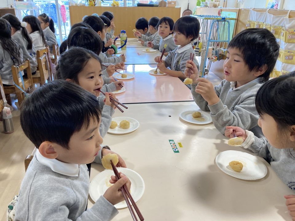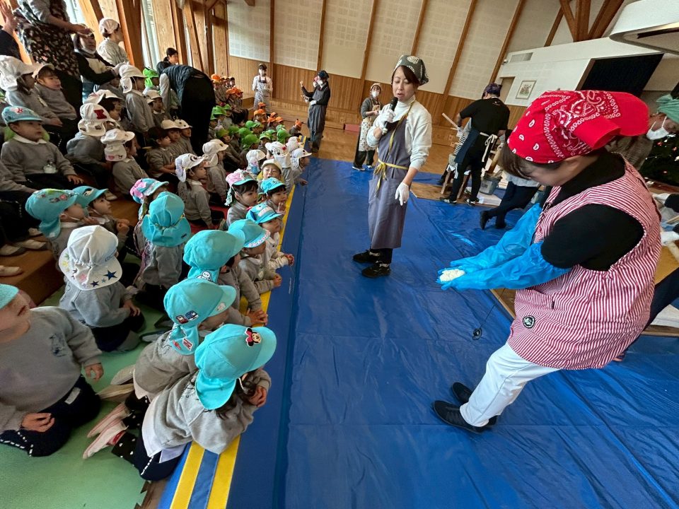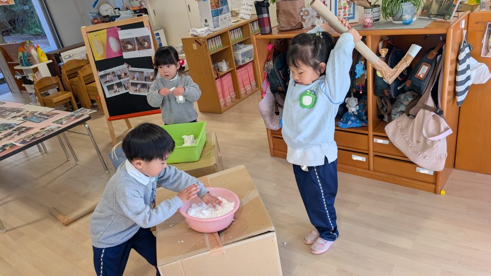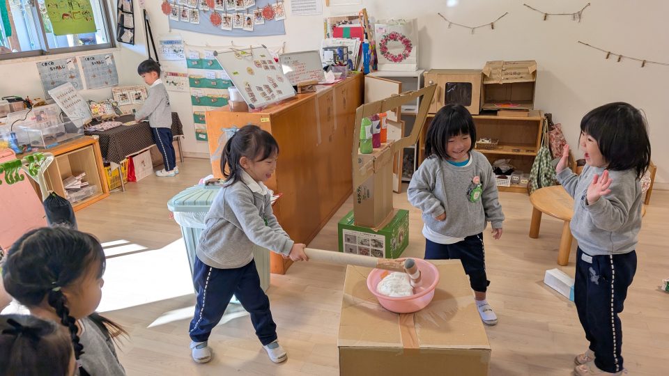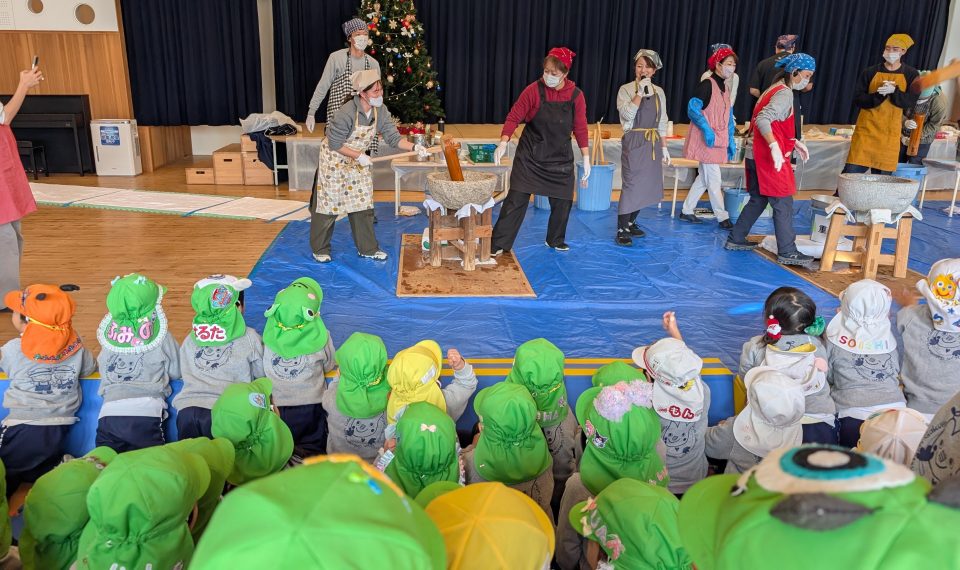 年長組さんは先生と一緒におもちをつきました♪♪