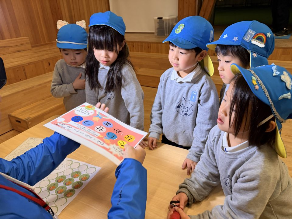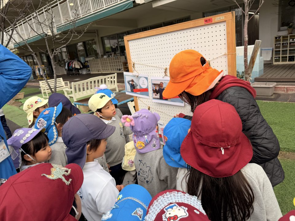 幼稚園のクイズに答えながら、